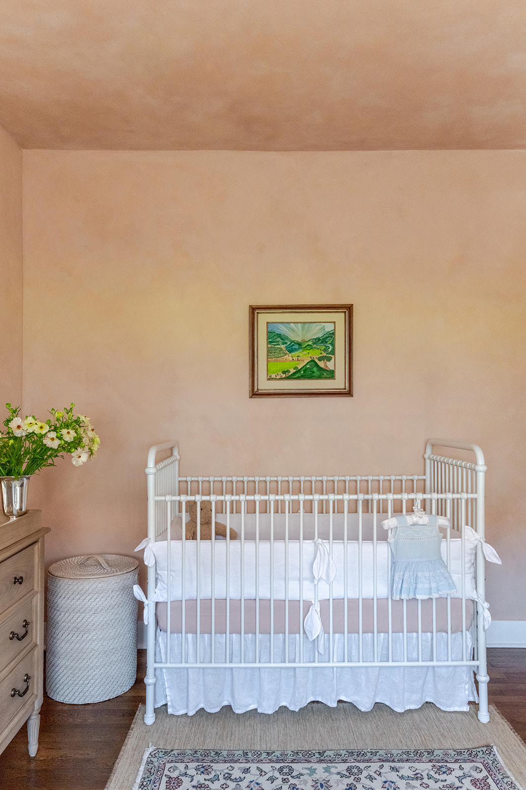 Nestled in the heart of Shenandoah, this baby girl’s nursery is a soulful blend of old and new. Designed to feel both intimate and inspiring, the room celebrates family legacy through meaningful vintage pieces, including an heirloom mini chair passed down from the client’s great-grandmother. A restored vintage light fixture adds a soft, nostalgic glow. The result is a nursery that honors the past while embracing the magic of new beginnings.
